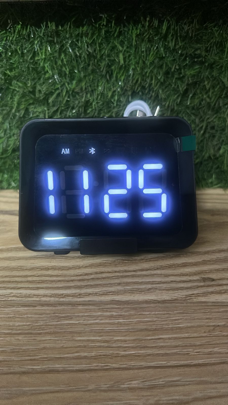 This sleek digital LED alarm clock features a large, bright display for easy time reading, even from a distance. The modern design includes AM/PM indicators and Bluetooth connectivity, making it more than just a clock. Perfect for bedside tables, offices, or living rooms, it combines style with functionality. The adjustable brightness ensures comfort at night, while the compact size makes it portable and versatile.