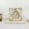 Bring divine serenity into your home with this stunning Mool Mantar decor set. Handcrafted from high-quality resin, this set features the sacred Gurbani in beautiful calligraphy on a plaque with a luxurious marble effect and shimmering gold flakes. Accompanied by matching decorative diya/tealight holders, it’s a perfect centerpiece for your prayer corner or a thoughtful gift to bestow blessings upon loved ones.