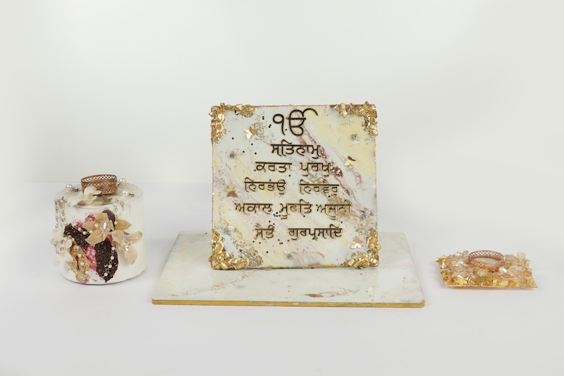 Bring divine serenity into your home with this stunning Mool Mantar decor set. Handcrafted from high-quality resin, this set features the sacred Gurbani in beautiful calligraphy on a plaque with a luxurious marble effect and shimmering gold flakes. Accompanied by matching decorative diya/tealight holders, it’s a perfect centerpiece for your prayer corner or a thoughtful gift to bestow blessings upon loved ones.