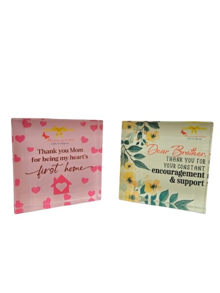 Square  shaped thick glass for your loved ones  Wording to make them feel  special  quote according to your choice with your company branding