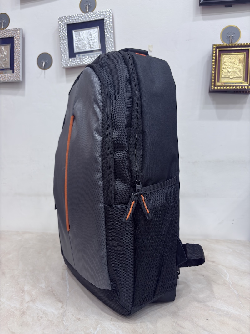 Combine style and functionality for your daily journey. This sleek and modern backpack is perfectly designed for the urban professional and student, featuring a unique textured grey panel with a stylish orange accent. With a spacious main compartment, a dedicated padded laptop sleeve, and multiple pockets, it keeps your essentials organized and secure. Lightweight, durable, and comfortable for all-day wear—it’s the ideal bag for your office, college, or daily commute.