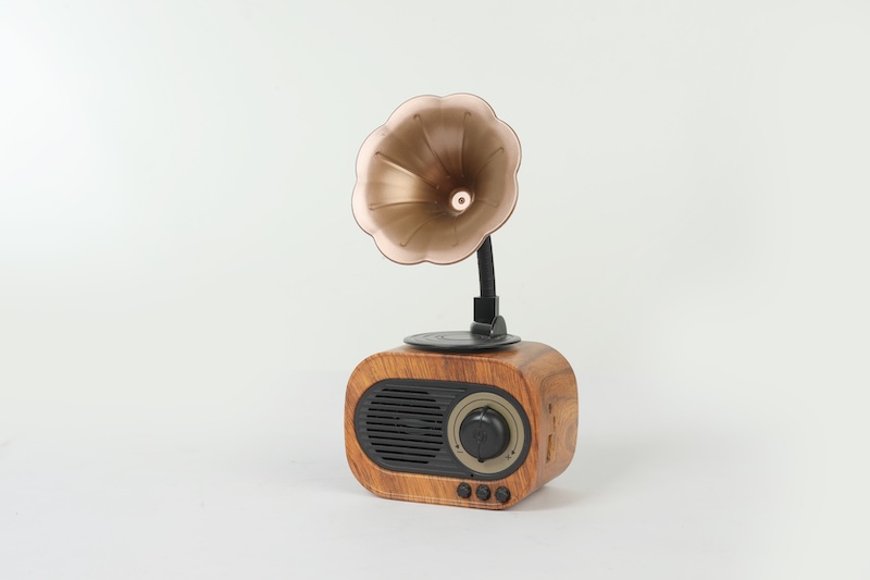 Bring a touch of nostalgic elegance to your home with this charming vintage-style Bluetooth speaker, combining the classic look of an old-fashioned radio and a gramophone horn. Featuring a warm wood-grain finish and copper accents, it wirelessly streams your favorite music with clear, rich sound, serving as both a high-quality audio player and a beautiful decorative piece. It’s the perfect conversation starter and a unique gift for anyone who appreciates timeless design and modern convenience.
